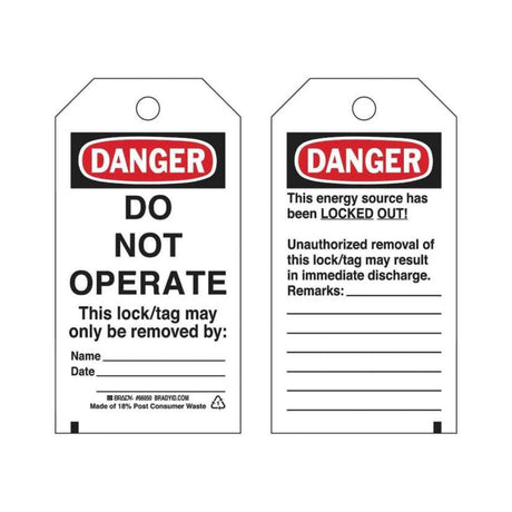 Brady Lockout Tag - Do Not Operate (Reverse Side-Unauthorised Removal..) 66050 (Pack of 25)
