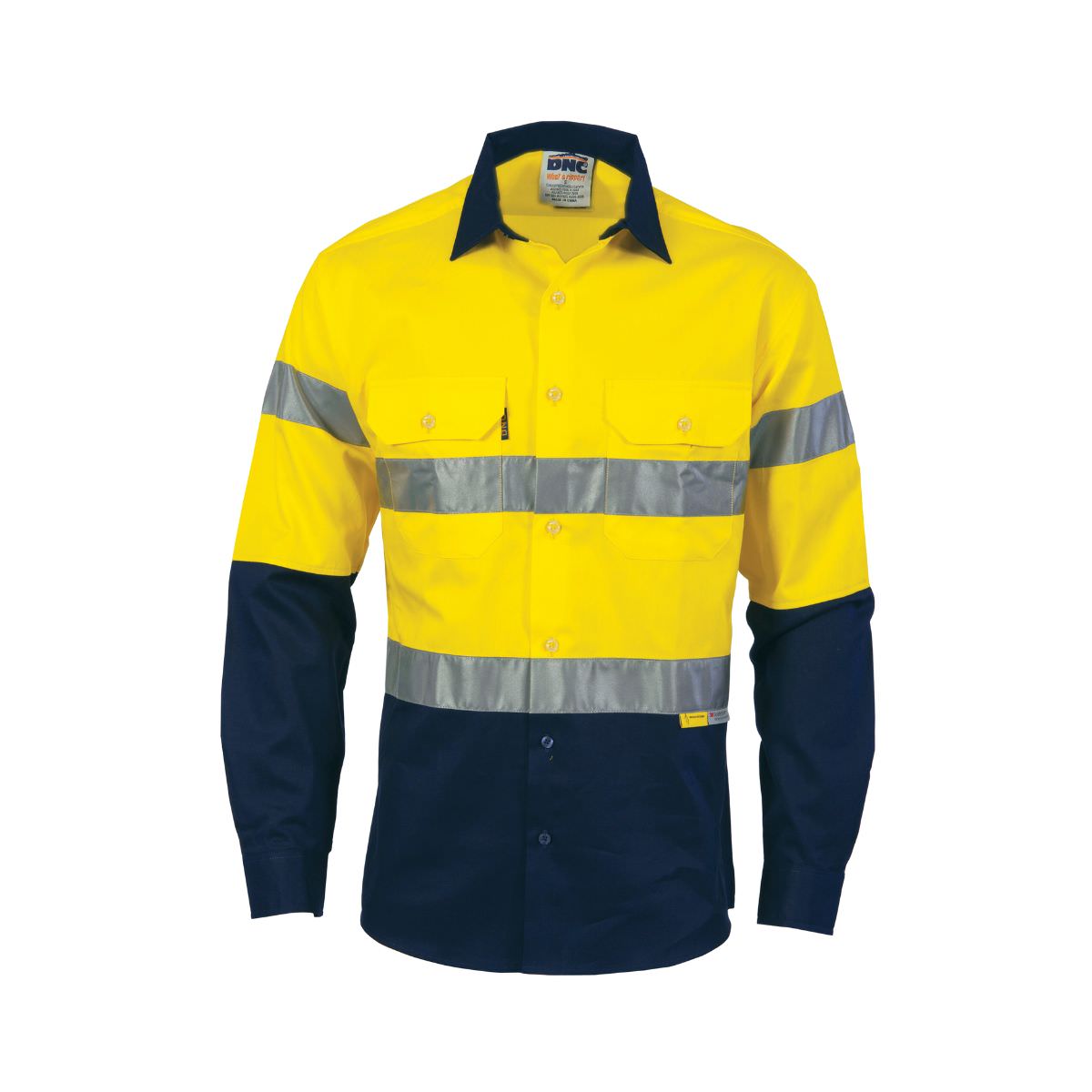 DNC Hi Vis Two Tone Drill Long Sleeve Shirt with 3M 8910 Reflective Tape 3836