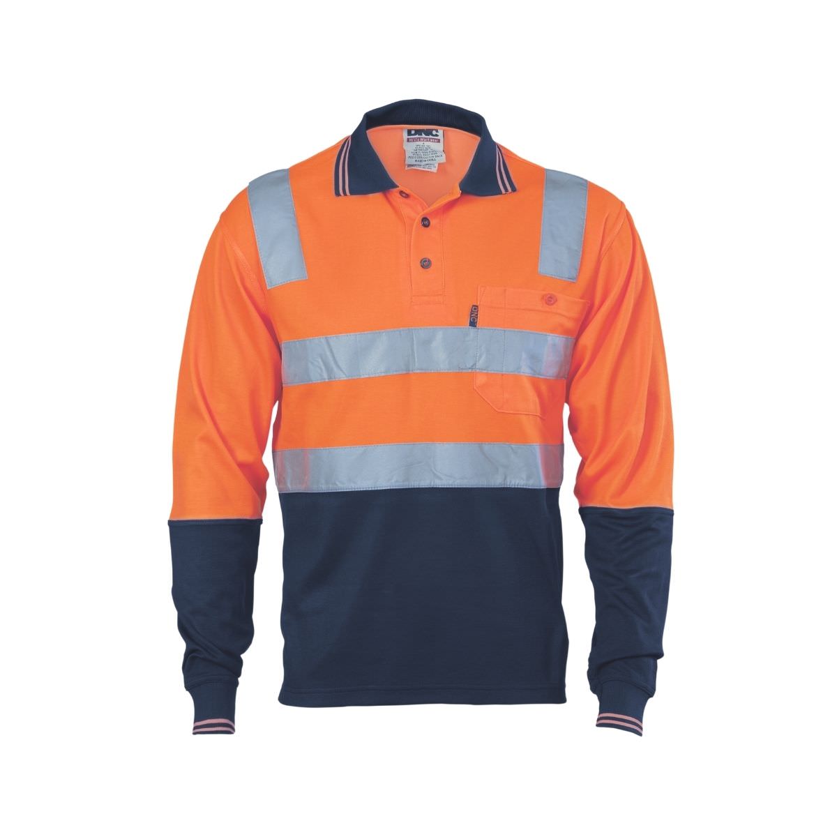 DNC HiVis Cotton Back HiVis Two Tone Polo Shirt With CSR Reflective Tape - Long Sleeve 3818