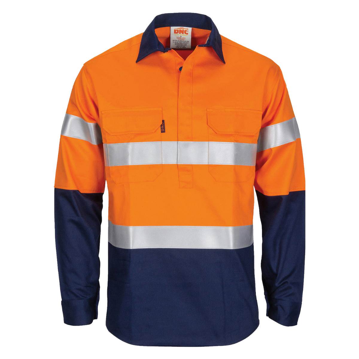 DNC Hivis Patron Saint Flame Retardant 2 Tone Closed Front Cotton Shirt with 3M F/R Tape - L/S 3407