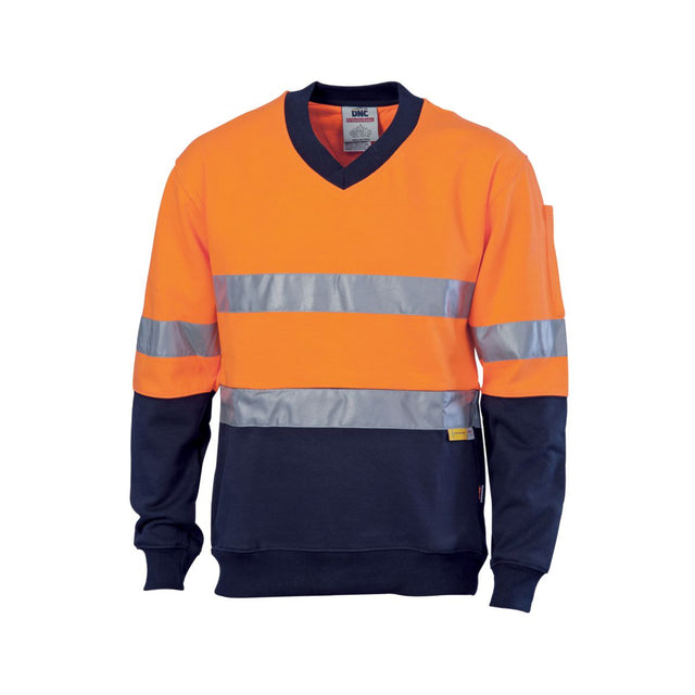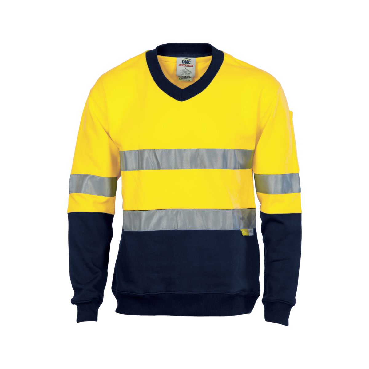 DNC HiVis Two Tone Cotton Fleecy Sweat Shirt V-Neck with 3M Reflective Tape 3924