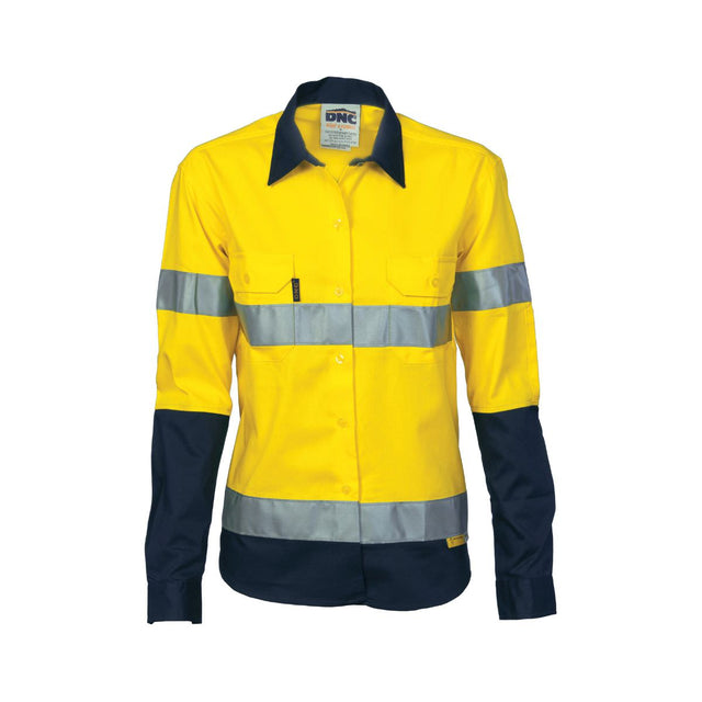 DNC Ladies HiVis Two Tone Drill Long Sleeve Shirt with 3M Reflective Tape 3936