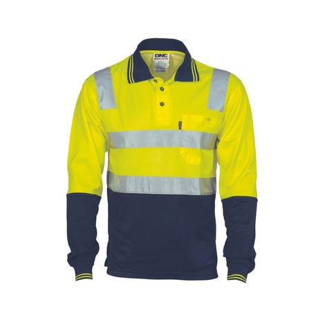 DNC HiVis Cotton Back HiVis Two Tone Polo Shirt With CSR Reflective Tape - Long Sleeve 3818