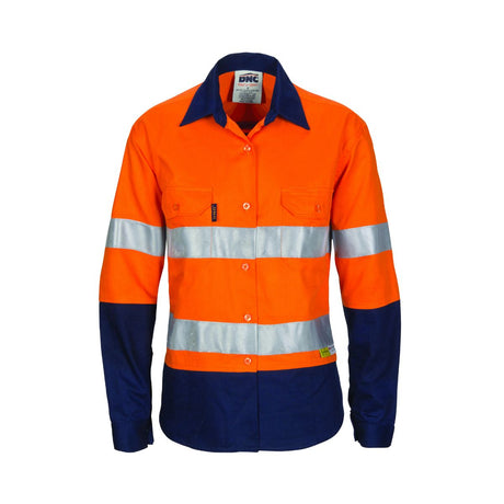 DNC Ladies HiVis Two Tone Drill Long Sleeve Shirt with 3M Reflective Tape 3936