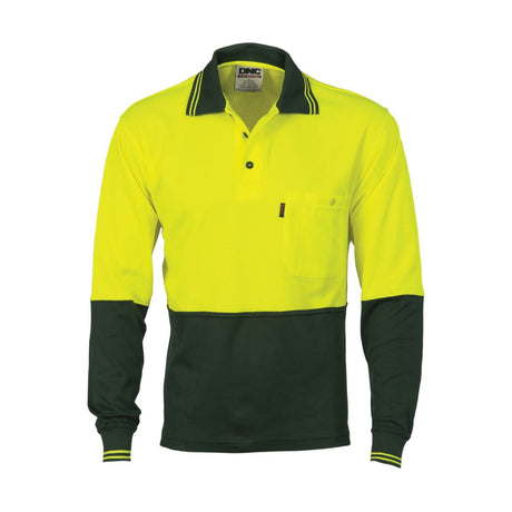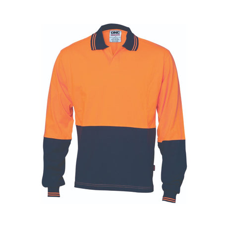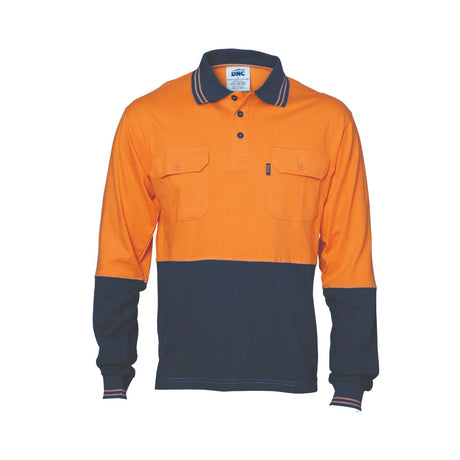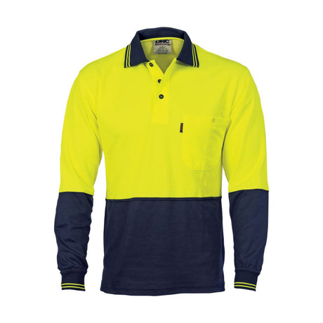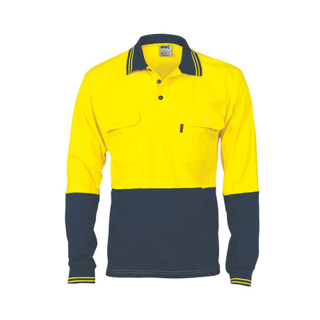 DNC HiVis Cool-Breeze 2 Tone Cotton Jersey Polo Shirt with Twin Chest Pocket - Long Sleeve 3944