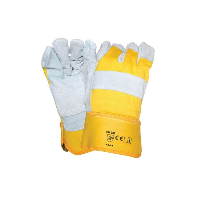 • Heavy duty cow split leather reinforced palm, thumb and forefinger