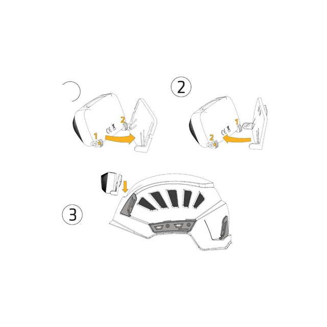 The helmet lamp clip, which can be inserted into the front Euroslot on the INCEPTOR GRX range, keeps the HIGH LIGHT headlamp in place without having to use an elasticated strap.