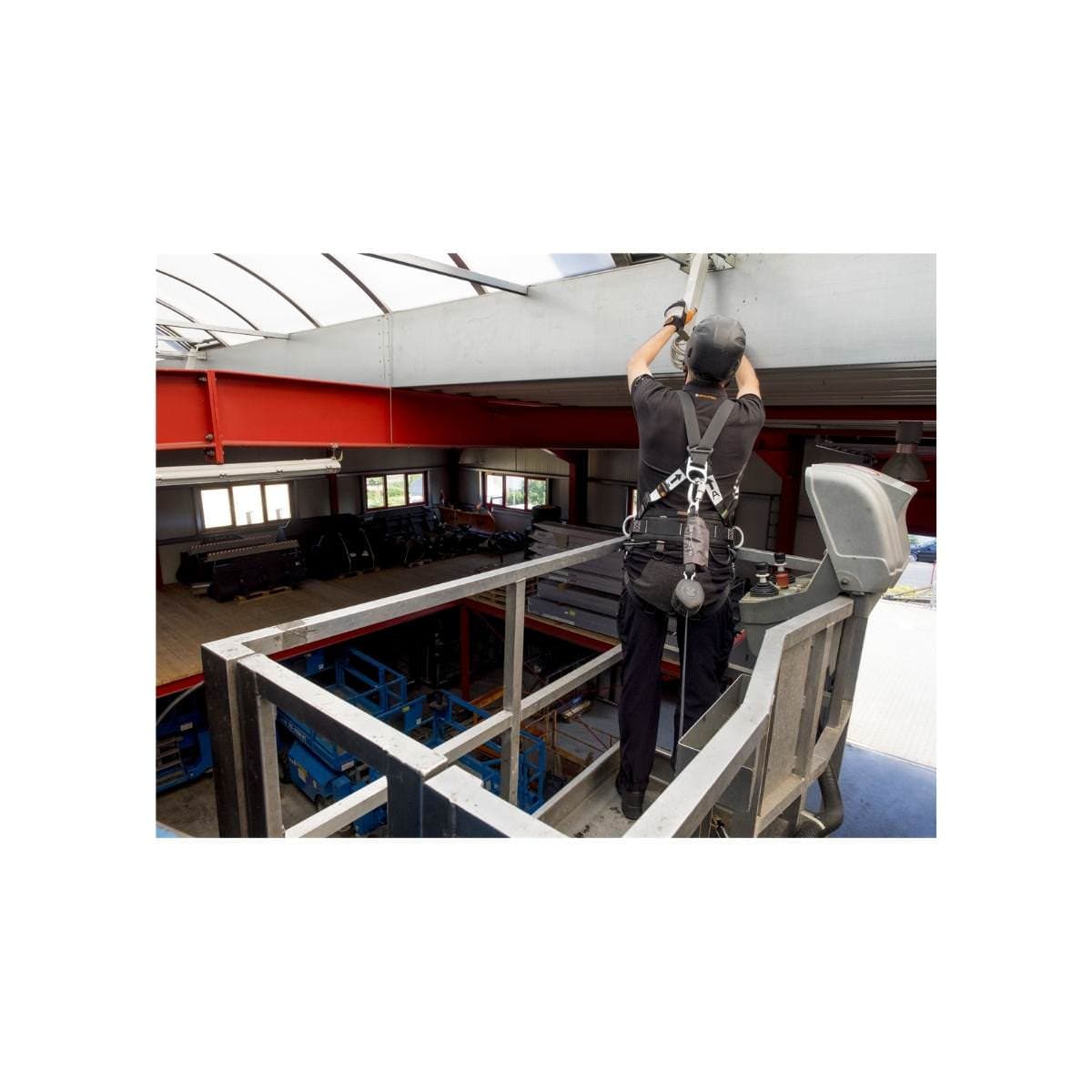 Ultra-compact fall protection device with SNAP HOOK carabiner on anchoring. The Peanut is already equipped with the new One-4-All shock absorber and is therefore approved for the weight class 50-135-kg. 2.5 m length for use in scaffolding.