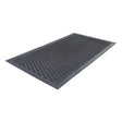 The True Grip Mat is a medium duty, rubber, anti-slip Mat used in wet and slippery areas. The raised lug patterned surface provides good traction when the mat is being walked on and keeps the feet elevated out of any spilt liquids. The Mat is made from natural rubber with a 25% nitrile content to give it grease resistance. Bevelled edges on all four sides allow easy access on and off for foot or wheeled traffic and prevent trips. True Grip comes in either a solid form for dry or light wet areas, or with drainage holes as an option, which allow for rapid drainage of anything that has spilt onto the Mat. This product is stocked in one standard size.