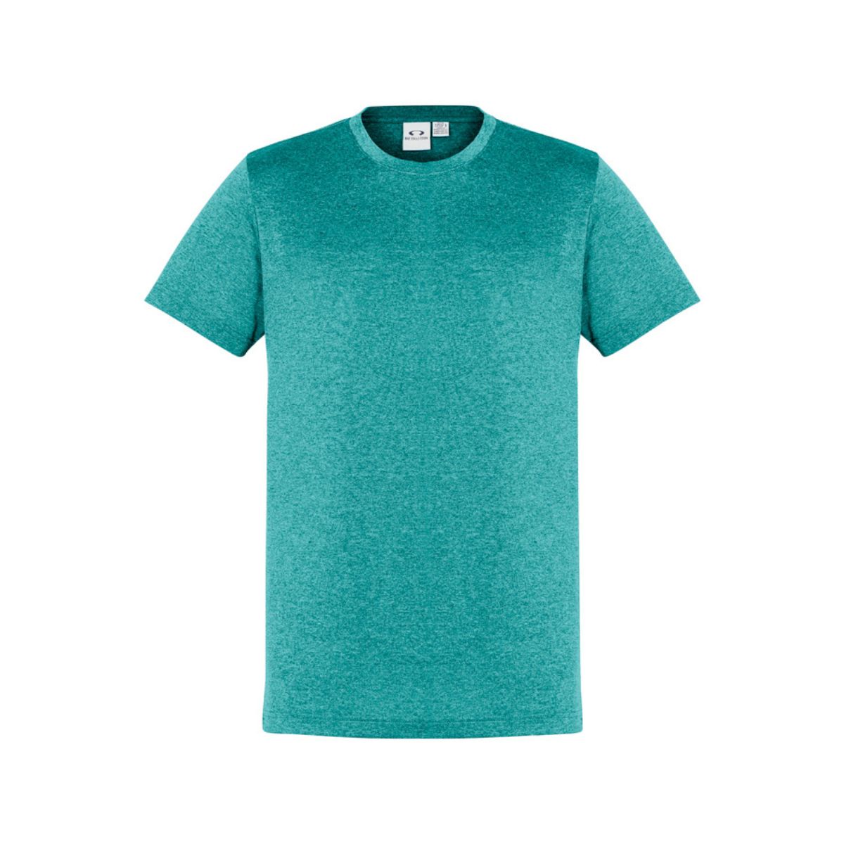 Perform any activity in comfort in our light-as-air AERO breathable tee. This is functional simplicity at its best with no-fuss anti-shrink, anti-fade fabric and a cotton-like feel that keeps you cool and dry. A heathered marle fabric and overlocked seam stitching delivers a modern design element to this classic style.
