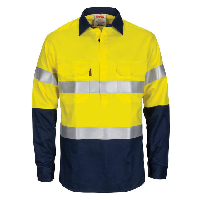 DNC Hivis Patron Saint Flame Retardant 2 Tone Closed Front Cotton Shirt with 3M F/R Tape - L/S 3407