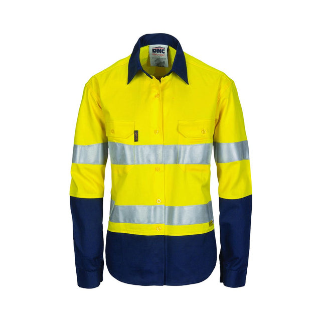 DNC Ladies HiVis Two Tone Cool-Breeze Cotton on Shirt with 3M Reflective Tape - Long sleeve Shirt 3986