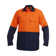 KingGee Workcool 2 Hi-vis Two Tone Long Sleeve Drill Work Shirt K54870 - Orange/Navy / S is backordered and will ship as soon as it is back in stock.