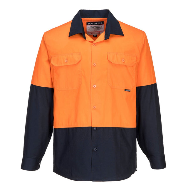 Portwest Hi-Vis Two Tone Lightweight Long Sleeve Shirt MS801 - Orange/Navy / S is backordered and will ship as soon as it is back in stock.