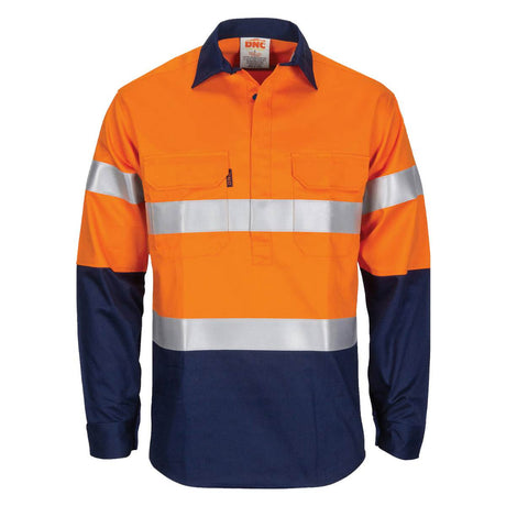 DNC Hivis Patron Saint Flame Retardant 2 Tone Closed Front Cotton Shirt with 3M F/R Tape - L/S 3407