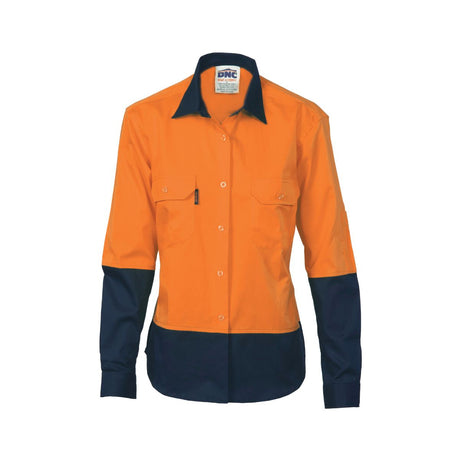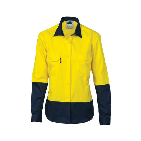 DNC Ladies HiVis Cool-Breeze 2 Tone Cotton Shirt with Twin Chest Pocket - Long Sleeve 3940