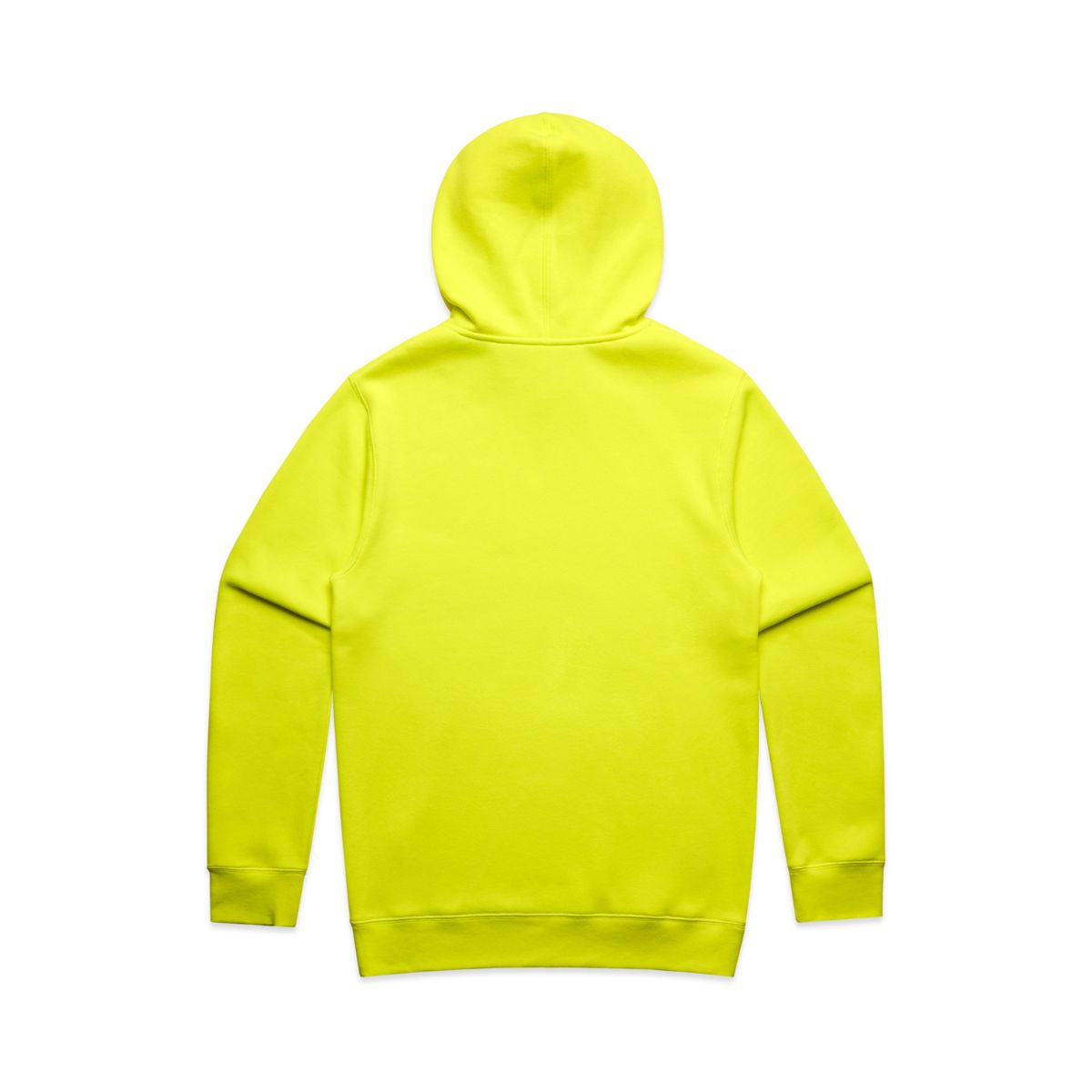 Pullover hood, lined hood, sleeve cuff ribbing, preshrunk to minimise shrinkage, inset sleeves, kangaroo pocket, high visibility safety garment.