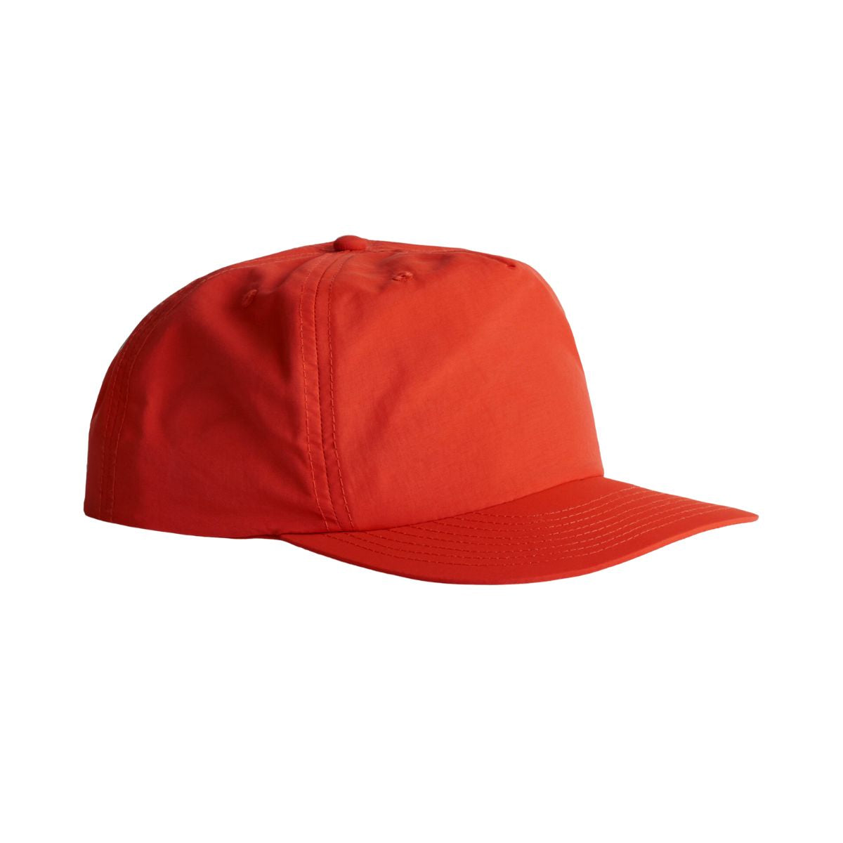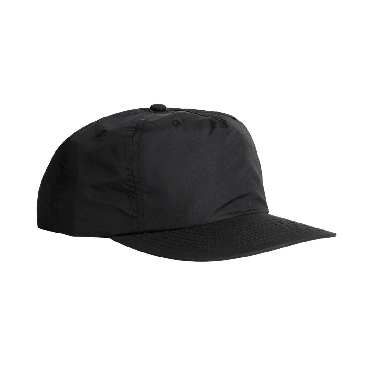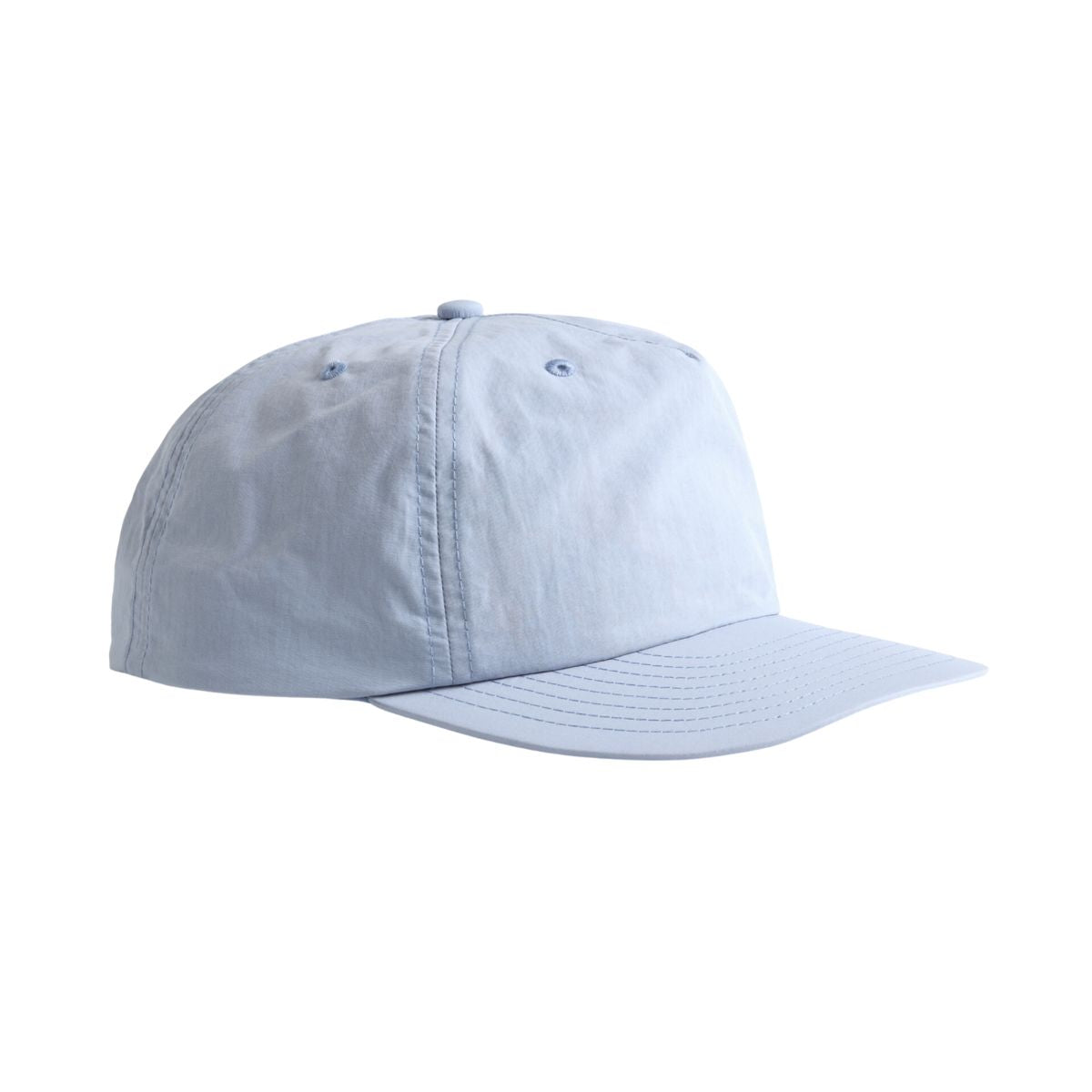Mid profile, snapback cap, single panel at front, plastic snapback, tonal under-peak lining, mesh structure support, flat peak.