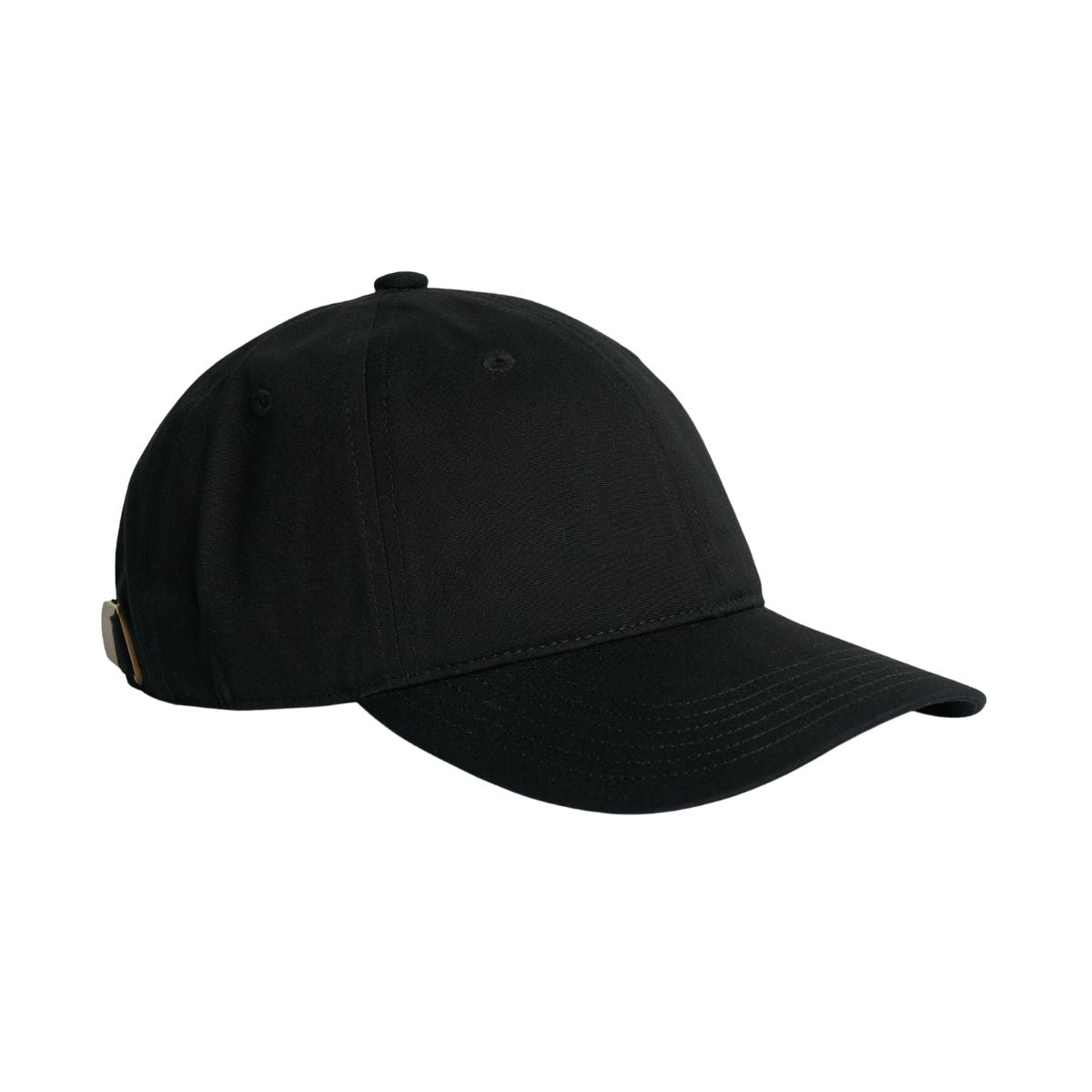 Low profile six panel cap, curved peak, adjustable fastener with metal clasp, tonal under-peak lining, tear-out AS Colour label.