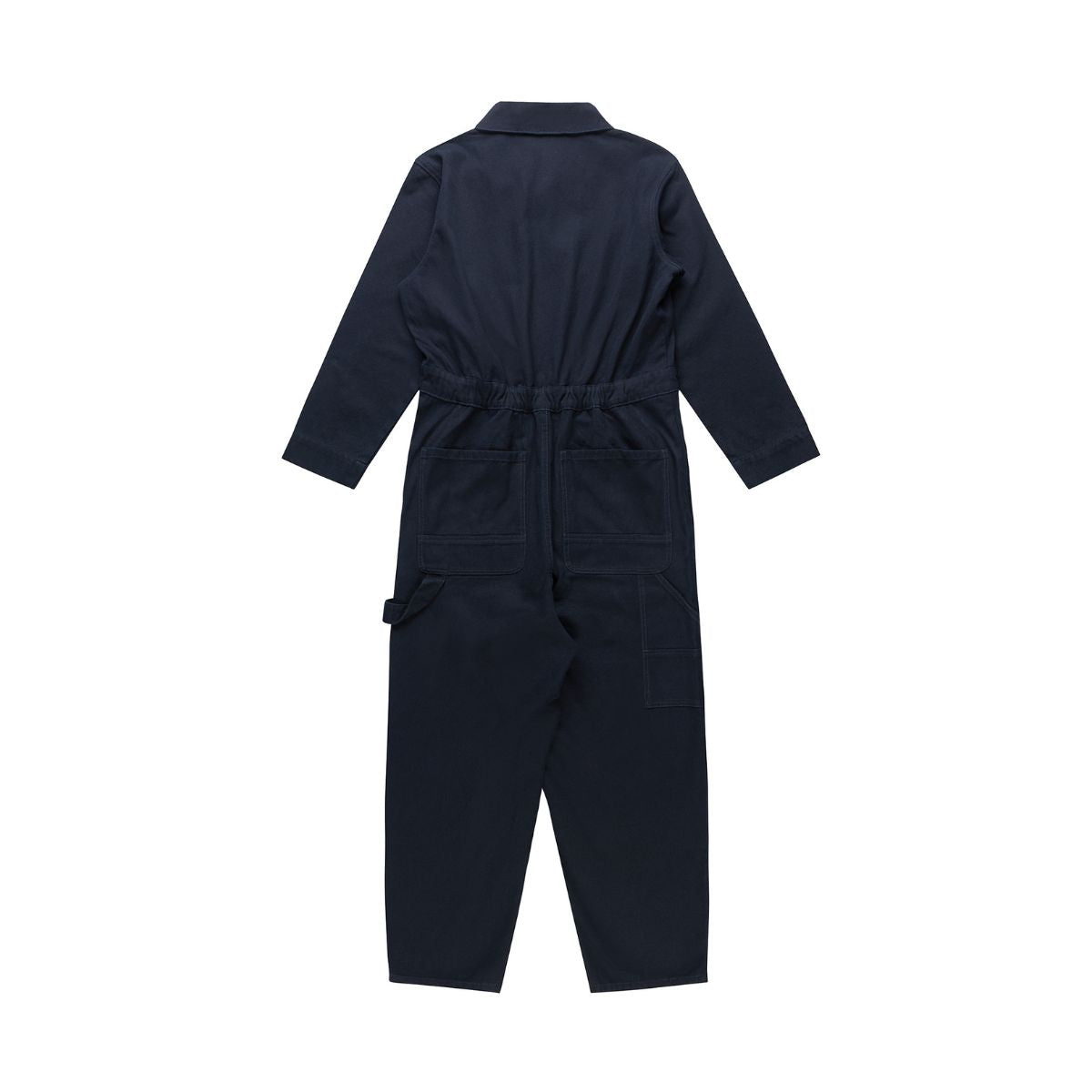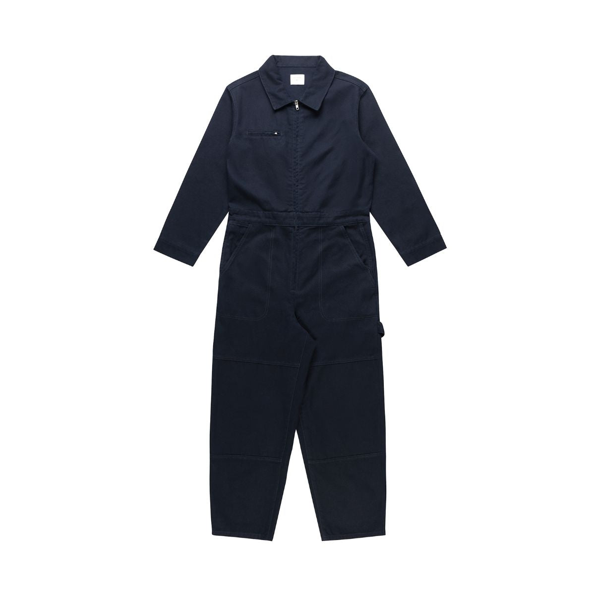 Collared all-in-one, adjustable shoulder straps, YKK zip front, 6 pockets, top stitch detailing, Elastic at center back, hammer loop, zip close chest pocket, internal access at pocket, double patch knees preshrunk to minimise shrinkage.