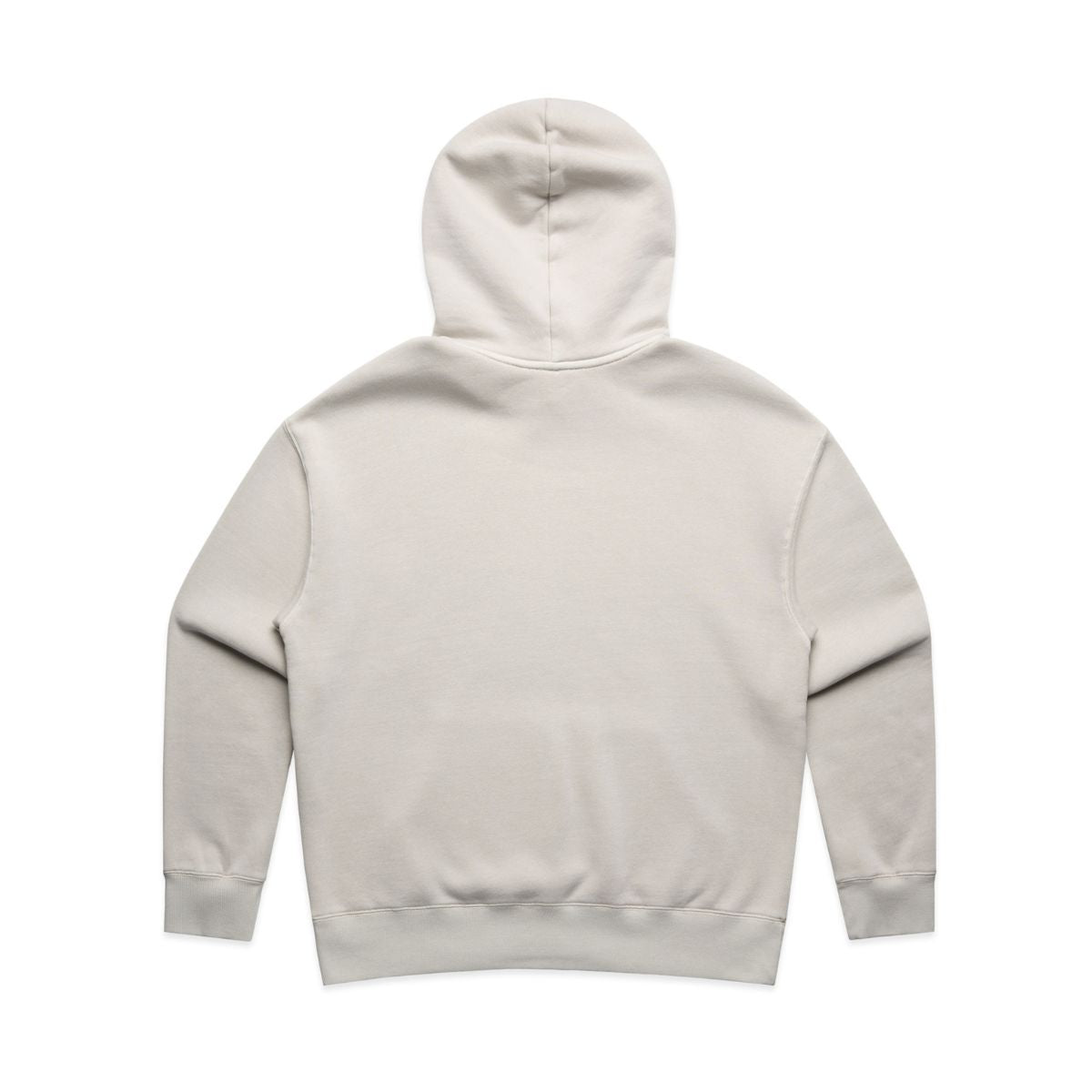 Pullover hood, drop shoulder, kangaroo pocket, self-fabric lined hood, no drawcord, garment dyed, sleeve cuff ribing.