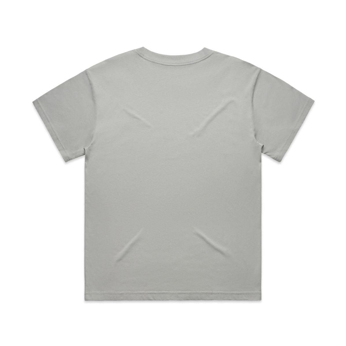 Neck ribbing, side seamed, shoulder to shoulder tape, double needle hems, preshrunk to minimise shrinkage, drop shoulder, mid length.