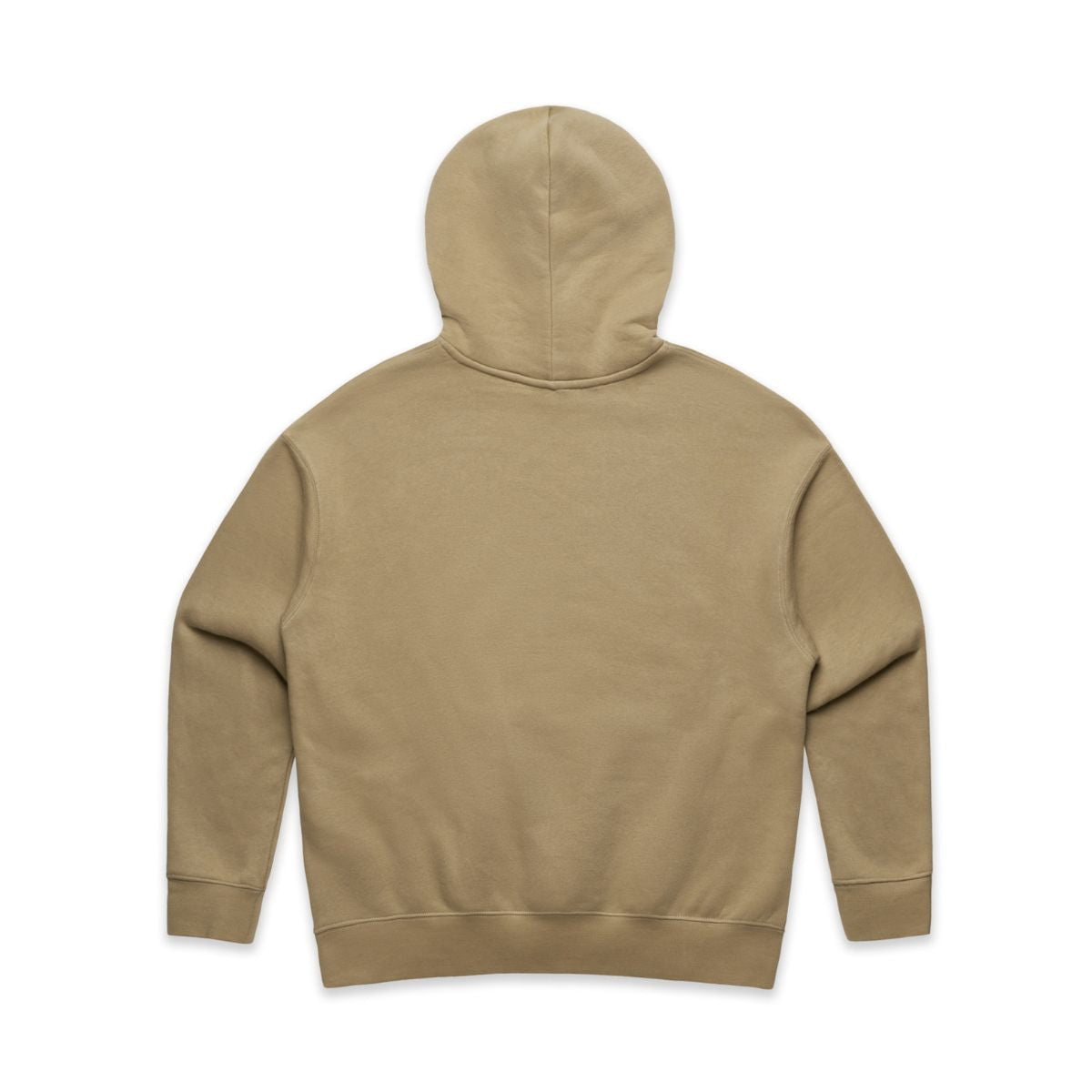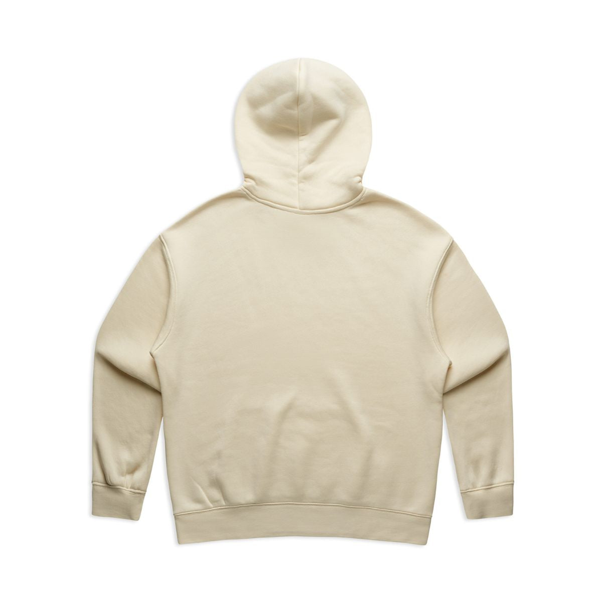 Pullover hood, drop shoulder, kangaroo pocket, lined hood, no drawcord, sleeve cuff ribbing.