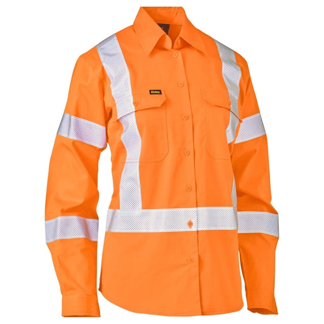 Bisley Women’s X Taped Biomotion Hi Vis Cool Long Sleeve Lightweight Drill Shirt BL6166XT