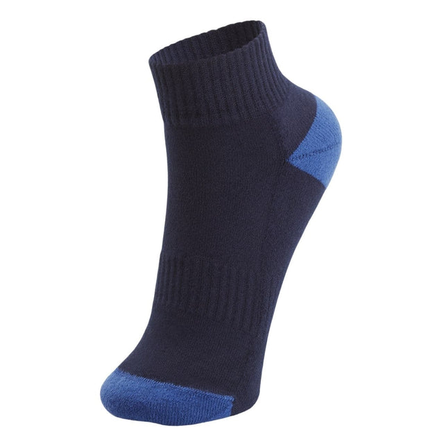 Soft and sporty, our new Bamboo Sports Sock Ankle Length Contrast Heel is set to become indispensable in your workwear wardrobe. Created for wear in demanding environments, this smart design fuses comfort and support. It's crafted from natural bamboo, blended with Elastane for extra stretch. Naturally anti-microbial and moisture wicking, the bamboo fibre is ideal for keeping busy feet feeling fresh. You'll appreciate the extra cushioning in the sole, heel and toe, which will provide relief throughout the longest shift. We like the contrast cobalt blue heel, which stands out against the classic midnight hue.