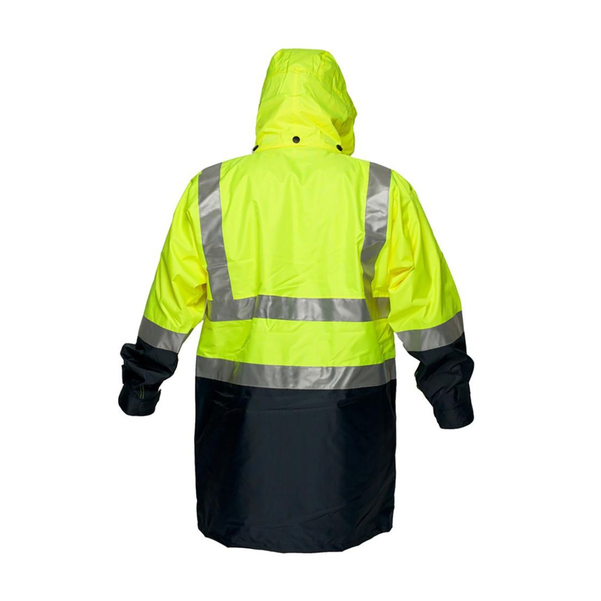 - Two-toned Hi Vis Day/Night waterproof rain jacket